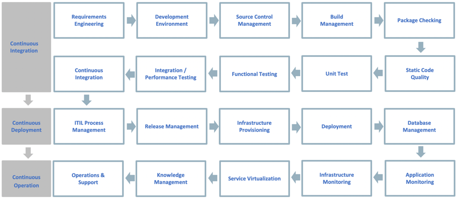 This is the most concrete part of DevOps: tooling and automation. It's not just about automation, though. It's about knowing the flow of information through the process from development to production, also called a value stream, and automating those.