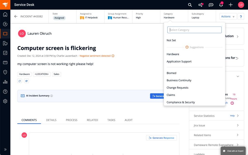 생성형 AI는 해결책을 제안하고 미리 작성된 응답을 제공하여 에이전트가 다음 단계로 신속하고 자신 있게 나아갈 수 있도록 지원합니다.
