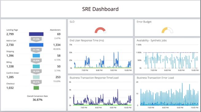 - Within minutes, the deployment tool detects reduced website traffic. It identifies a latency SLO violation and creates an alert.