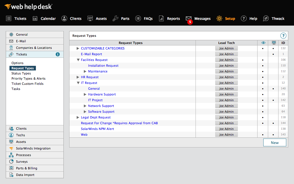 "Prior to using of SolarWinds Web Help Desk, we would only use email to receive support requests. Almost all the time requests would get lost in the clutter. Now, we can see an exact number of open tickets at any given time. Its so great, our other non-IT support departments have begun using Web Help Desk to keep them on track and on time."